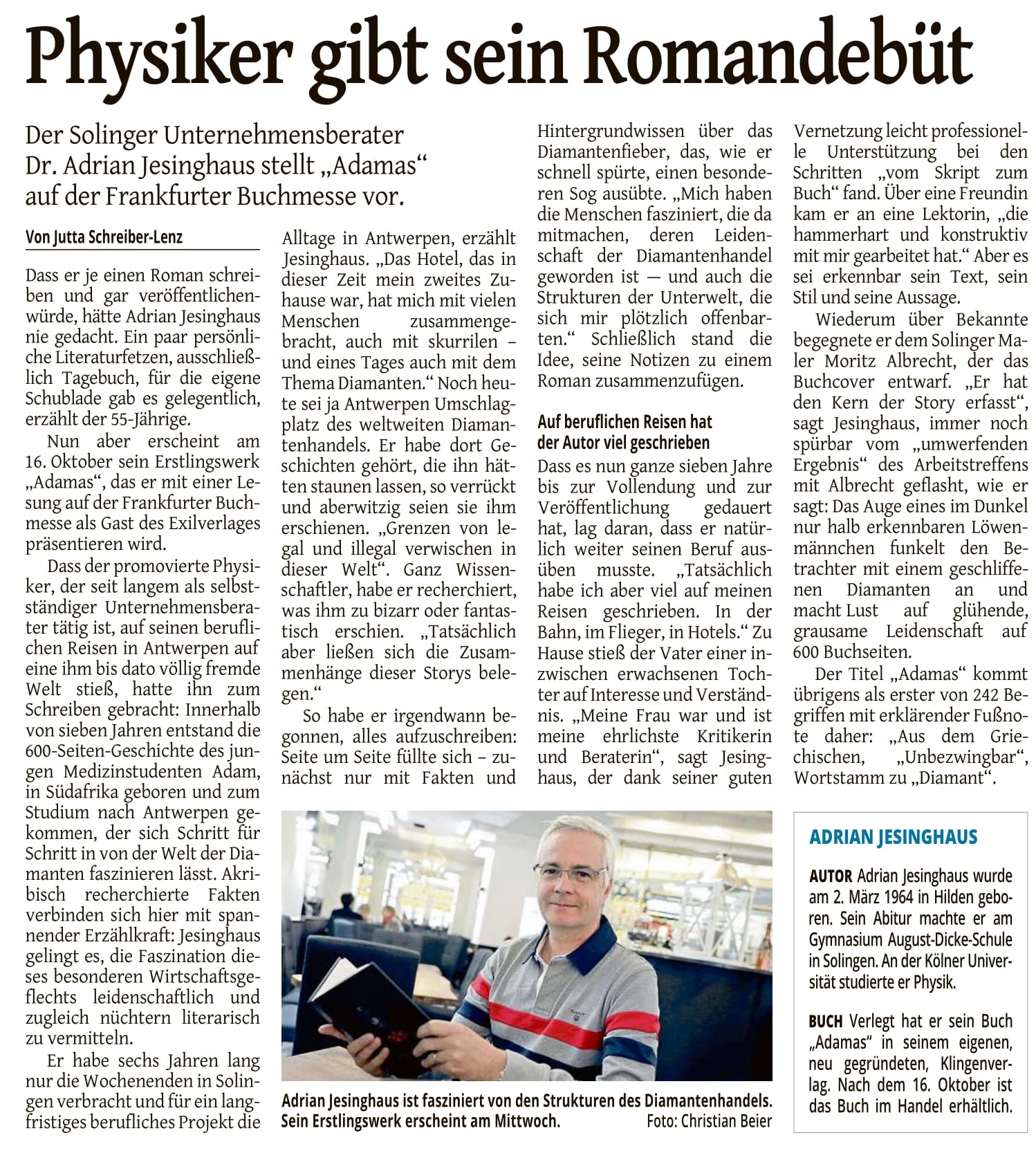 Am 12.10.2019 erschien im Vorfeld der Frankfurter Buchmesse ein Artikel im Solinger Tageblatt.