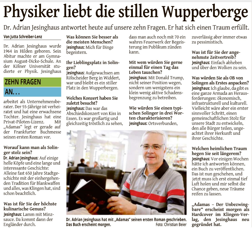 Am 16.10.2019 erschien ein Kurz-Interview mit dem Autor im Solinger Tageblatt.